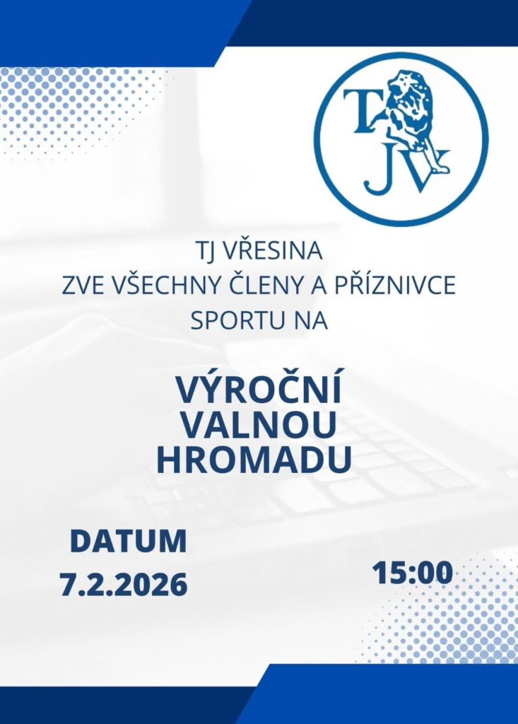 Tělovýchovná jednota Vřesina z. s. zve své členy i hosty na valnou hromadu TJ Vřesina.